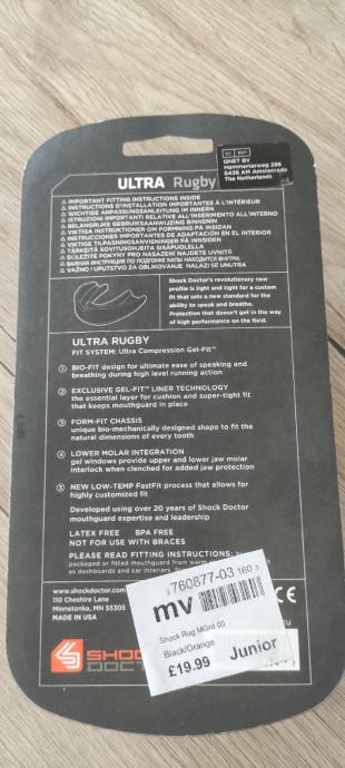Štitnik za zube, SHOCK DOCTOR, model Ultra Rugby, jedan od najboljih štitnika za zube za borilačke sportove, rugby, hokej na ledu, in-line hokej.....za dob do 12godina, sa zaštitnom kutijom, novi zapakirani, 15,00eur.