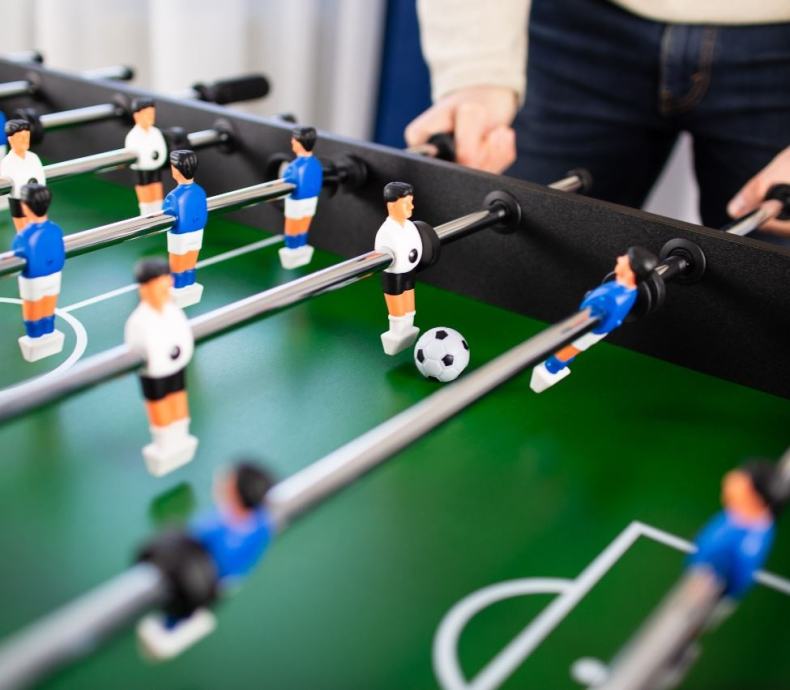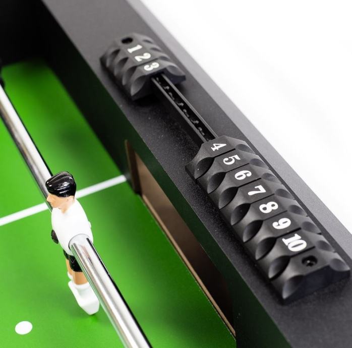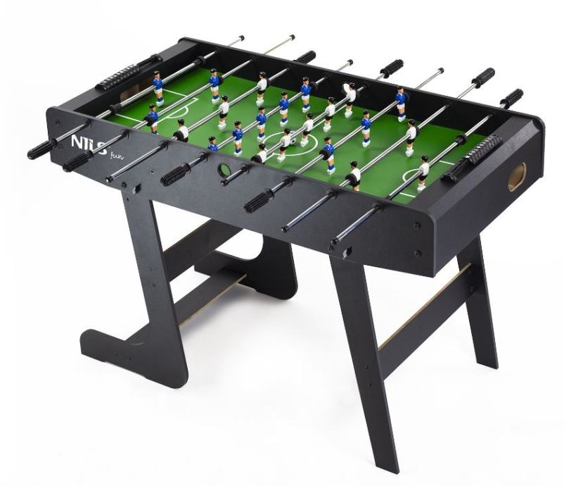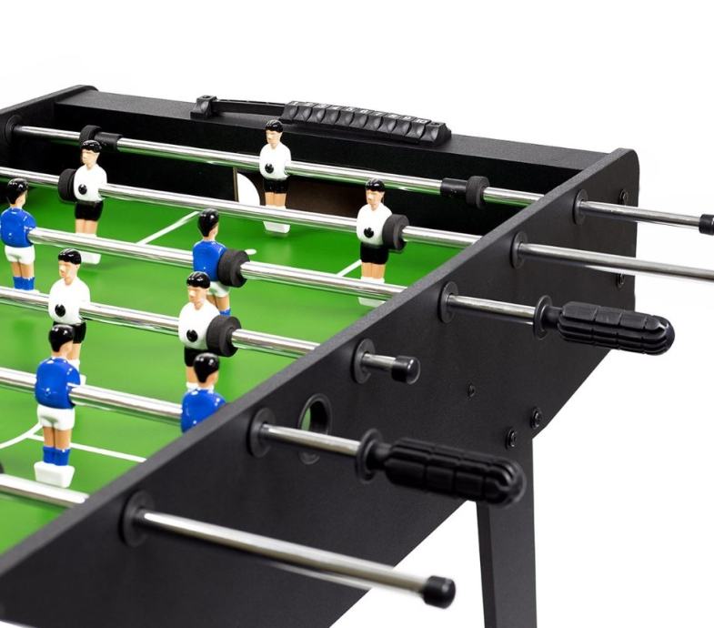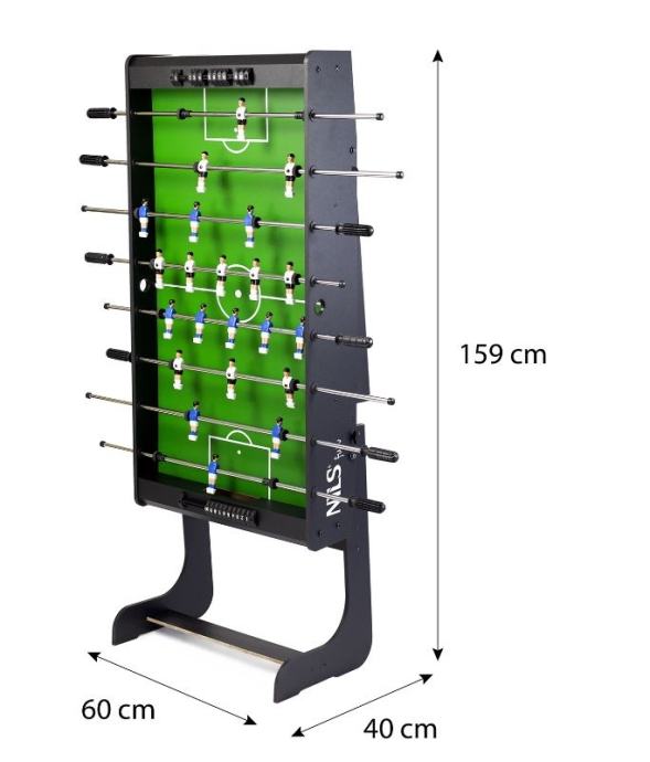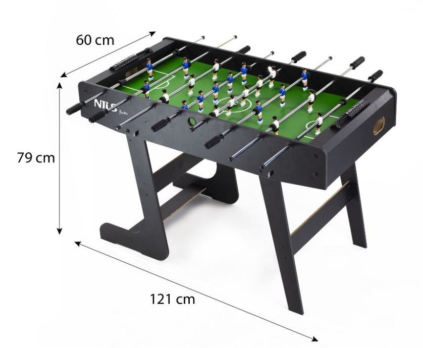 Odličan stolni nogomet za provođenje slobodnog vremena u društvu prijatelja ili obitelji. Izrađen od visokokvalitetne MDF ploče koja je otporna na abraziju tijekom višegodišnje uporabe. Stol se nakon upotrebe može sklopiti tako da zauzima manje prostora. Zbog veće površine noge, stol je vrlo stabilan.Vrlo stabilan s nogama na većoj površini.SklopiviMaterijal: MDF, PVCDuljina: 121 cmŠirina: 60 cmVisina: 79 cmUključene 2x loptice za igruDebljina šipke 13 mmNogomet ima 11 igračaBrojač golovaSklopljene dimenzije: 159 x 40 x 60 cmTežina: 18 kg