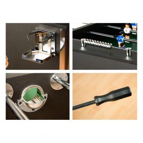Besprijekorno podignuti kutovi za bolji izgled i čišći tijek igre (loptica ne može ostati u kutu), udaljenost između figure i polja za igru 12 mm (standard turnira), šuplje čelične šipke od 15,9 mm (5/8") (lakše od čvrste šipke, mali zamor zgloba - u profesionalnom sportu se stoga koriste samo šuplje šipke)