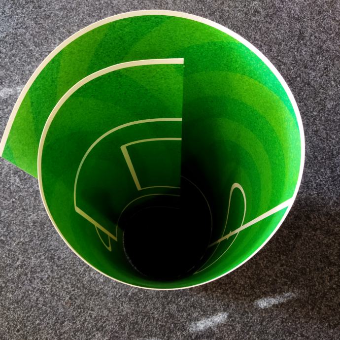 Umeće se ispod stakla na igraćoj površini stolnog nogometa