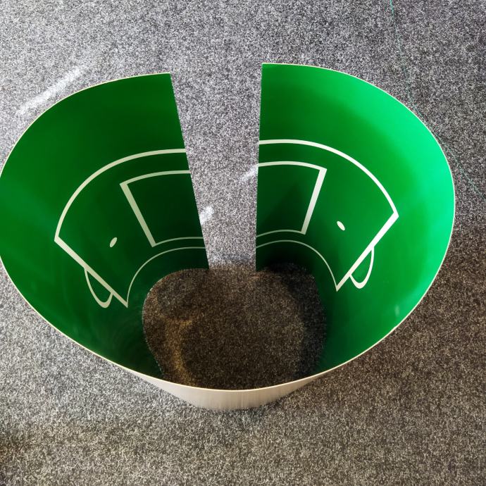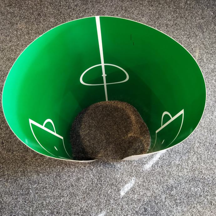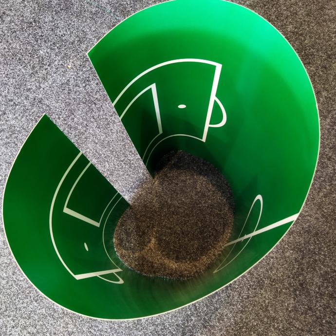 Umeće se ispod stakla na igraćoj površini stolnog nogometa