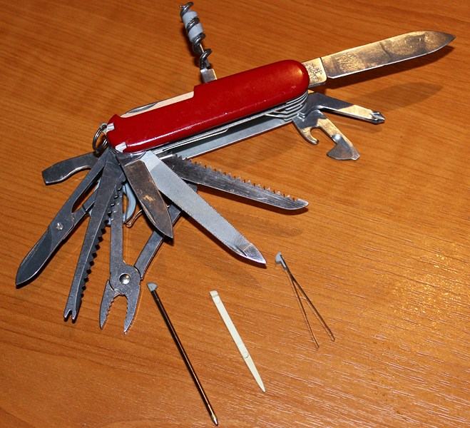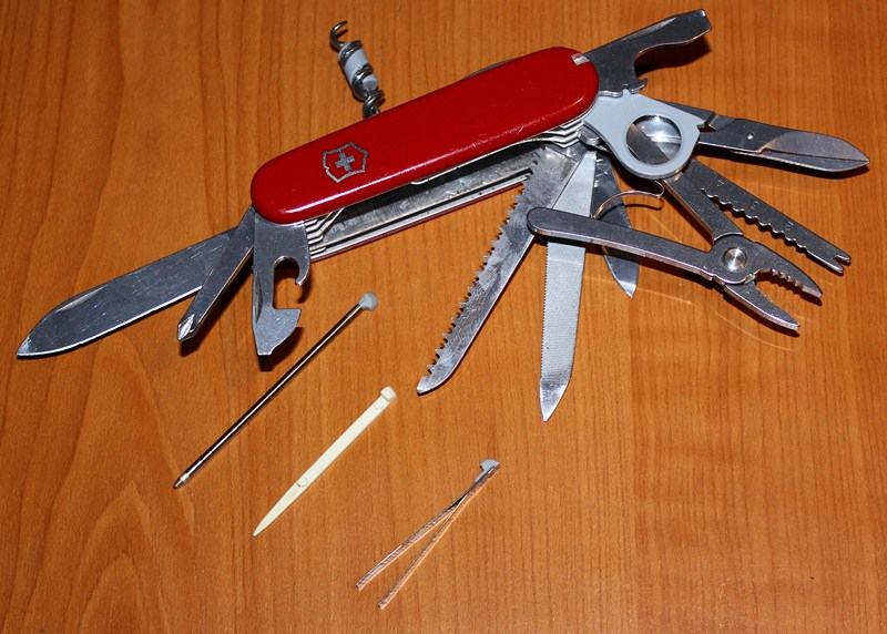 veliki odvijač, vadičep, mini pinceta, čačkalica,