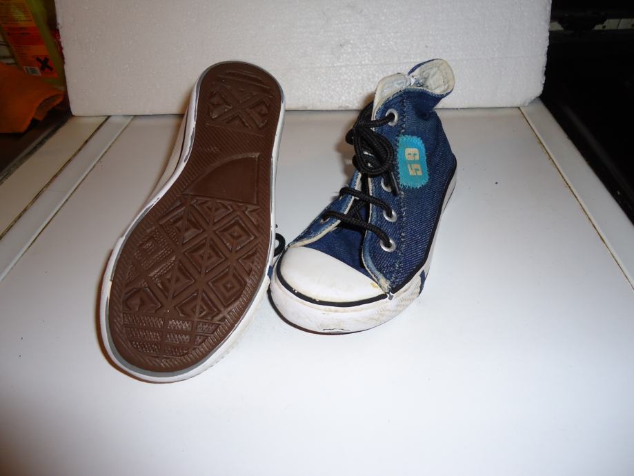 Kao na slici, nošene i u očuvanom stanju. Lijeva tenisica na vrhu malo više izlizana (vidi sliku)