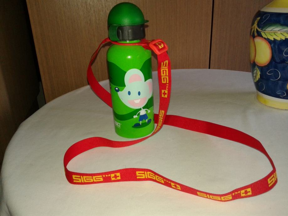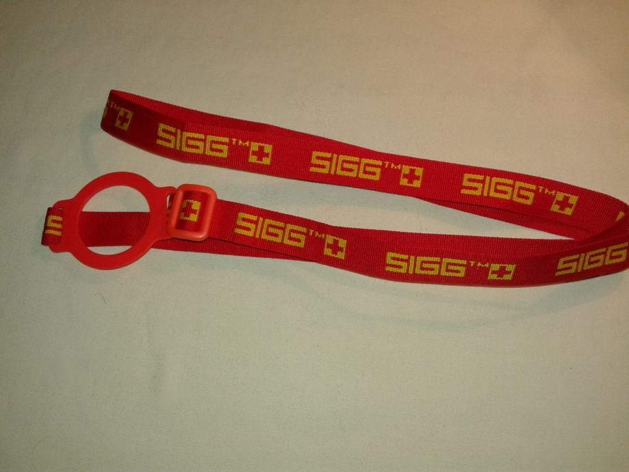 Nova, originalna traka za nosenje SIGG bocica ili bocica drugih proizvodjaca, crvene boje sa utkanim slovima brenda u zutoj boji, duzine 115 cm.Kada ste na izletu u setnji ili u slobodno vrijeme kada sa sobom ne nosite nista, dobro dodje bocica sa vodom koja se objesi preko ramena. Nacin dostave prema dogovoru. Dostava nije uracunata u cijenu.