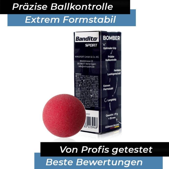 Loptice za stolni nogomet Winspeed Bomber koriste profesionalni igrači kao loptice za trening, kao i na turnirima i prvenstvima. S više od 35 godina iskustva, njemački brend Bandito jedan je od vodećih proizvođača profesionalnog stolnog nogometa.