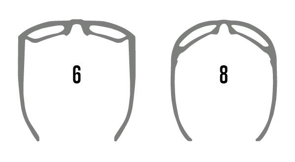 Osnovna krivulja 6 su manje zakrivljene od naočala s krivuljom 8. Imaju srednje dobro pristajanje, što znači da ne obuhvaćaju vaše lice na isti način, već leže ravno uz lice. Zbog toga bolje pristaju većem broju tipova i veličina lica.