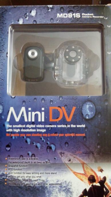nova,samo isprobana, sa vodootpornim kucistem I svim original priborom, micro SD 2gb prilozena, vrlo malih dimenzija, baterija drzi 2,5h