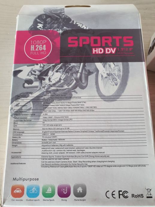Nova akcija kamera 12 mpx, full hd 1080p, 2.0" lcd, novo sa opremom.