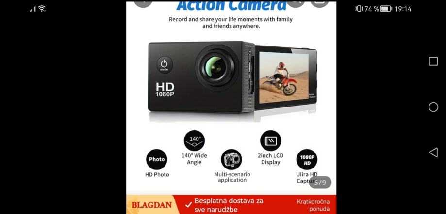 na prodaju kamera sa slika, nova, ne koristena, samo isprobana, imam jos 3 tak da mi je ova viska, dajem jos i dodatni nosac za glavu/kacigu, sve skupa 30e, kome se cenka cena je 50e!