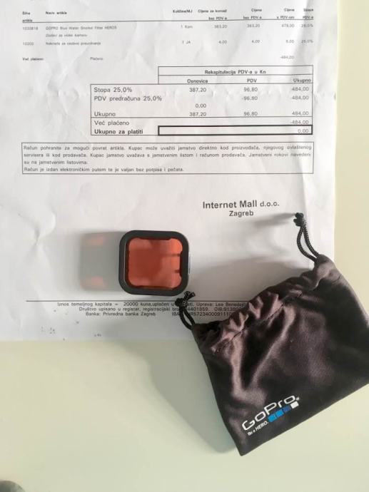 Original s računom GoPro Crveni filter za GoPro Hero 5 i 6, za samu kameru ne i vodootporno dodatno kučište, Blue snorkel filter, kupljen nedavno, pod garancijom, novi u dućanu 484 kn. Bez oštećenja. Samo je otpakiran, nije nikad korišten.