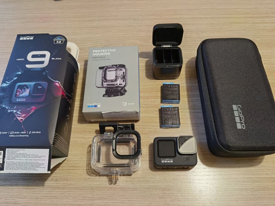 GoPro Hero 9 + podvodno kućište do 60m + punjač s 2 baterije 1750mAh