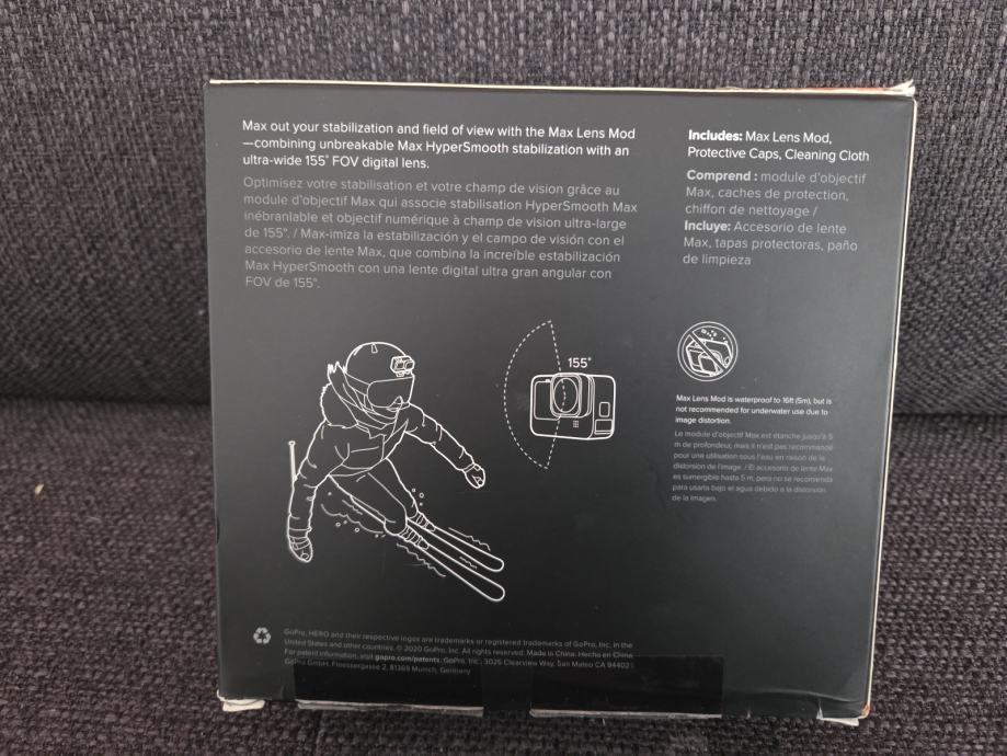 Prodajem GoPro max lens mod, nadograđuje vašu kameru sa Max HyperSmooth stabliziacijom videa, te daje max kut od 155°. Horizon lock omogućuje ravnu snimku iako se kamera okreće za 360°.