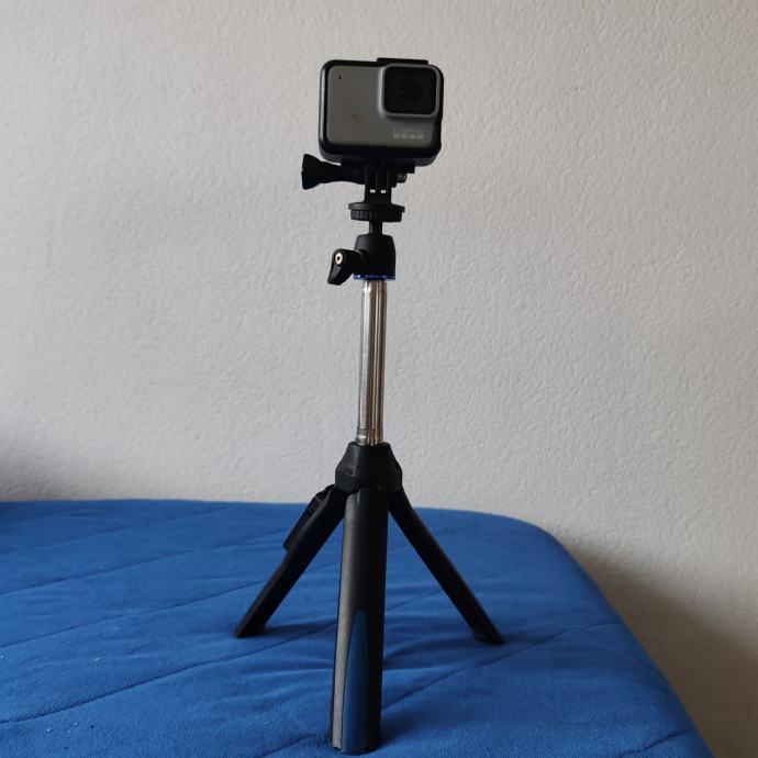 Uz stativ dolazi i ugrađeni Bluetooth daljinski upravljač za okidanje fotografija i pokretanje/zaustavljanje snimanja na daljinu. Idealan komplet za putovanja, vlogove, snimanje sportskih aktivnosti ili sadržaja za društvene mreže. Prodajem jer mi stoji i ne koristim ga dovoljno.
