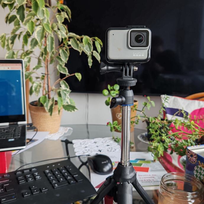 Prodajem korištenu GoPro White 7 akcijsku kameru s originalnim kućištem, montiranu na Benro BK10 mini stativ koji se može koristiti i kao selfie stick. Kamera je kupljena 2019. godine i još uvijek radi bez ikakvih problema. Na kućištu su prisutni samo manji tragovi korištenja, bez pukotina ili većih oštećenja. Puni se C punjačem. Baterija je ugrađena i ne vadi se.