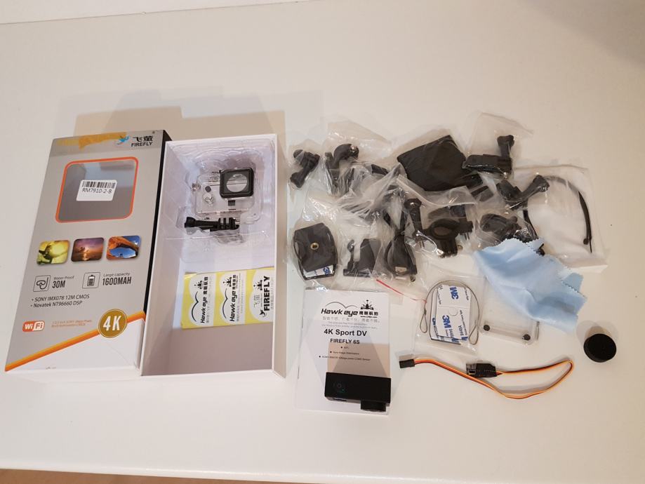 Prodajem novu nekorištenu akcijsku kameru, puno dodatne opreme i priključaka, vodootporno kućište, kabel za FPV.