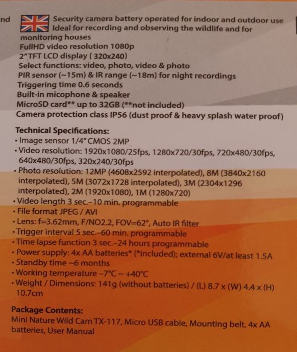 TECHNAXX TX-117 Mini Nature Wild Cam