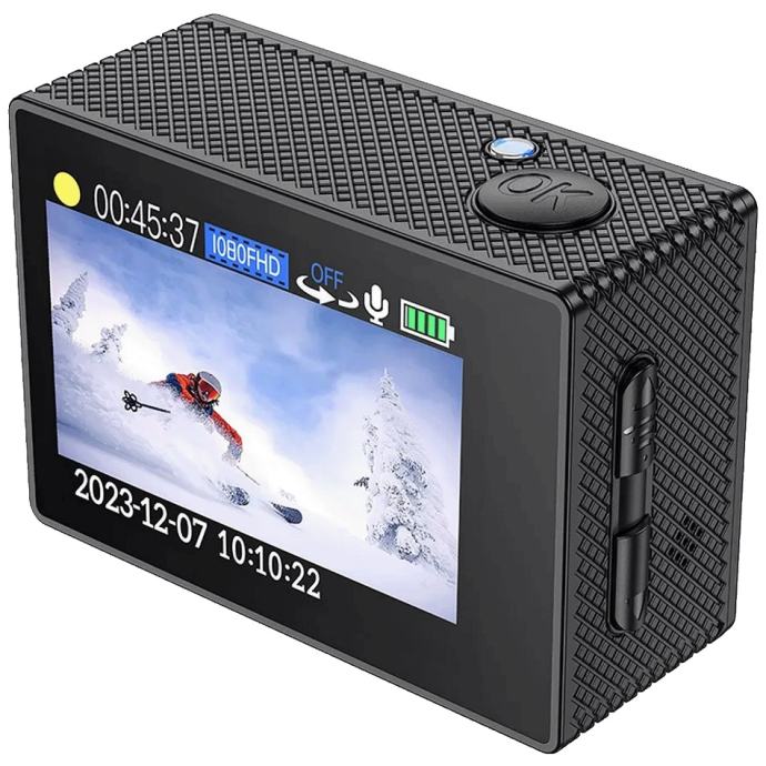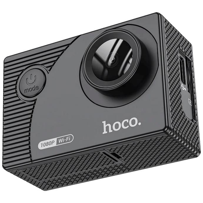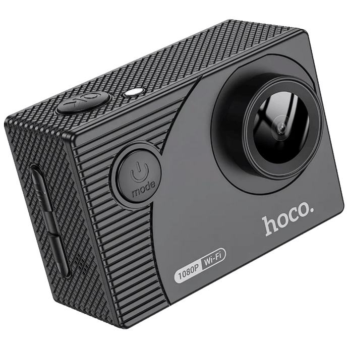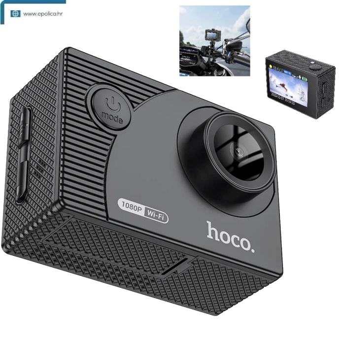 Sportska kamera Hoco DV100 savršeno je rješenje za ljubitelje tjelesnih aktivnosti i avantura na otvorenom. Opremljena 2-inčnim IPS HD zaslonom i naprednim GC1054 senzorom, ova kamera vam omogućuje snimanje 1080P videa visoke rezolucije pri 30 sličica u sekundi. Uz Wi-Fi podršku i namjensku mobilnu aplikaciju, kamera nudi jednostavno rukovanje i pristup snimljenim materijalima s bilo kojeg mjesta. Osim toga, uz njegovu pomoć možete dijeliti svoje avanture u stvarnom vremenu. - Visoka kvaliteta slike Kamera koristi napredno tehničko rješenje Lingtong GP2247 i GC1054 senzor koji jamči jasnu sliku rezolucije 100W piksela. Uz IPS HD ekran od 2 inča, korisnici mogu uživati u praktičnom pregledu snimljenih materijala uz iznimnu kvalitetu detalja i boja. Rezolucija 1080P/30fps pruža glatke i detaljne snimke, idealne za snimanje svih vrsta aktivnosti.