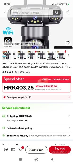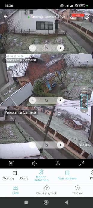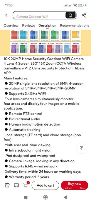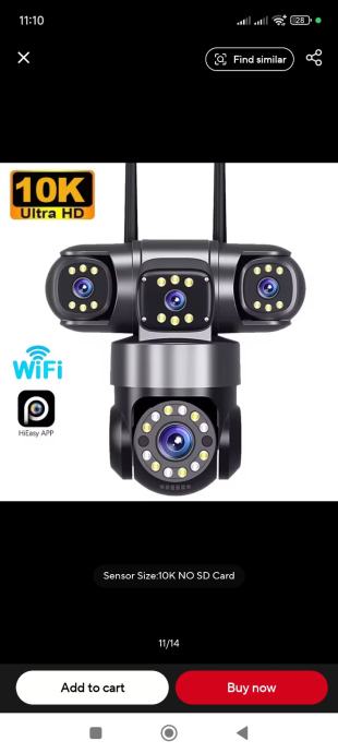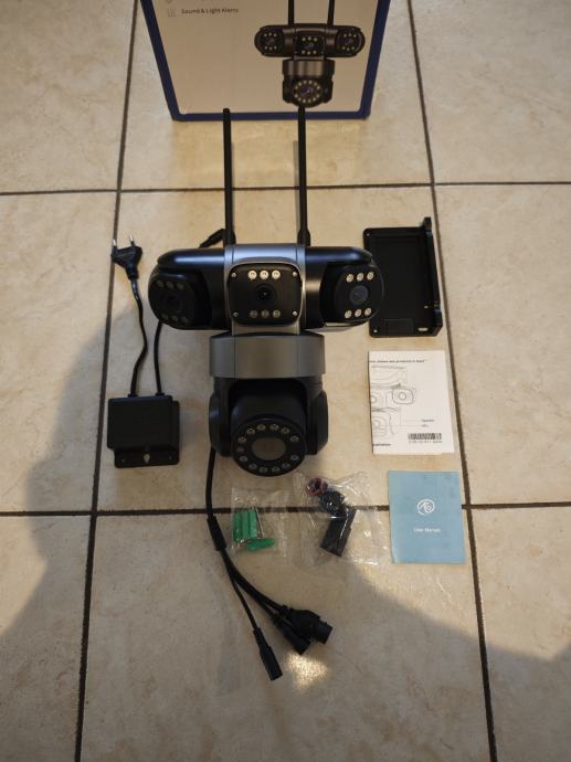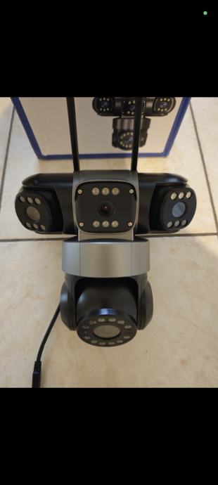 Prodajem novu vanjsku (moze i unutra) 10K 20MP WiFi kameru za videonadzor. Kamera ima u sebi 4 kamere koje mogu gledati i namjestiti se u 4 razlicita smjera dok je jedna pokretljiva i krece se 360⁰. Kamera ima svoje jako LED osvjetljenje, infracrveno nocno osvjetljenje, pracenje osoba, snimanje, javljanje kretanja na mob putem aplikacije, alarm itd itd. Potrebno joj je napajanje struje i WiFi signal u blizini i kamera je u funkciji za 10min. P