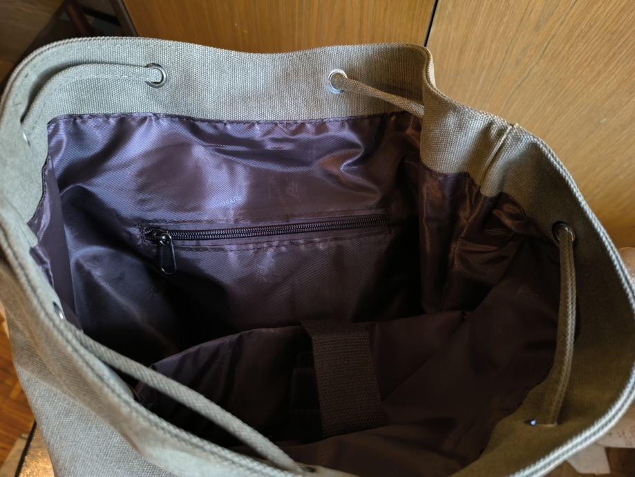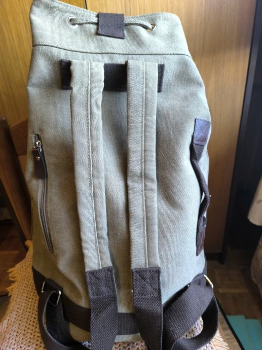 Odličan ruksak od čvrstog platna (ne od slabe plastike koja kada se raspukne možete ga baciti). Novi, nekorišten.
