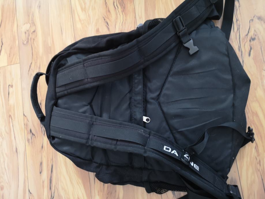 Dakine ruksak s puno pretinaca i prostorom za nošenje skateboarda, s tim da je bio korišten za par putovanja i u tu svrhu je fenomenalan.