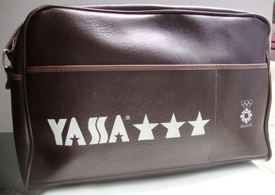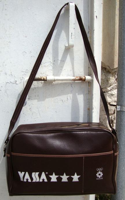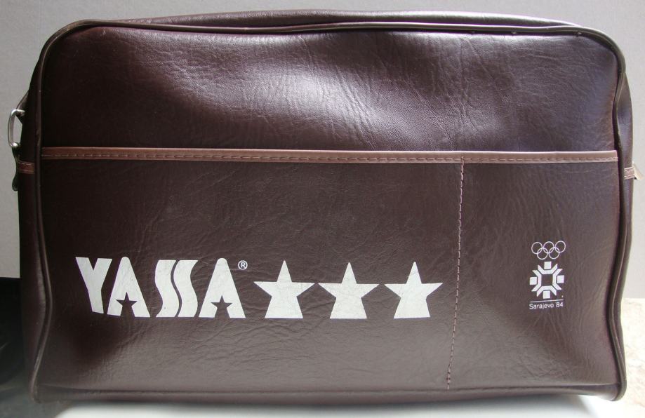 Prodajem staru retro torbu Yassa Sarajevo 1984 (made in Yugoslavia), izrađena povodom zimskih olimpijskih igara u Sarajevu 1984. godine. Izrađena je od neke vrste kože, braon je boje, super očuvana. Maksimalna dužina remena 72 cm (mjereno sa torbom). Mjere: 40x24x13 cm.