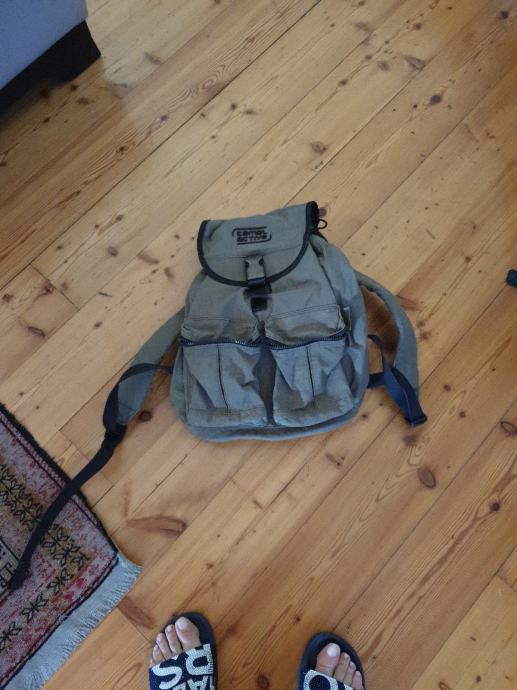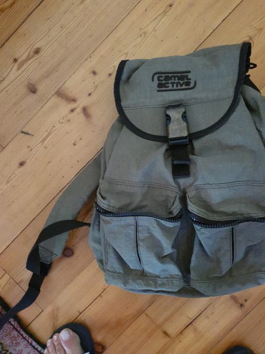 prodajem camel ruksak dimenzija 42 x 32 cm sa unutarnjim džepom sa cifršlusom i 2 vanjska džepa sa cifršlusima, ugodne smeđe boje.
