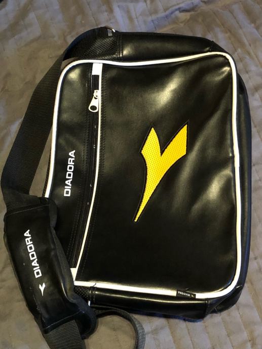Torba je original Diadora. Stanje i izgled su vidljivi na slikama. Napravljena je od umjetnog materijala (u stilu umjetne kože na obući). Isprobana je i spremljena, praktično nova - samo je stajala u ormaru neko vrijeme. Dimenzije (bez remena): 14,5x26,5x36,5cm. Moguća dostava za Osijek. Za dodatne info se javite.