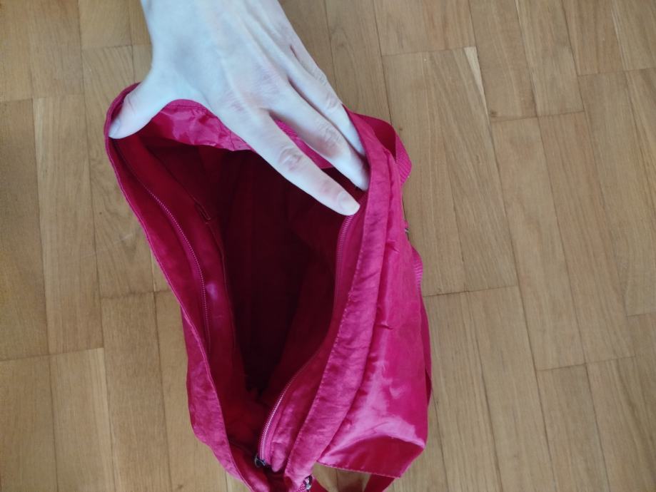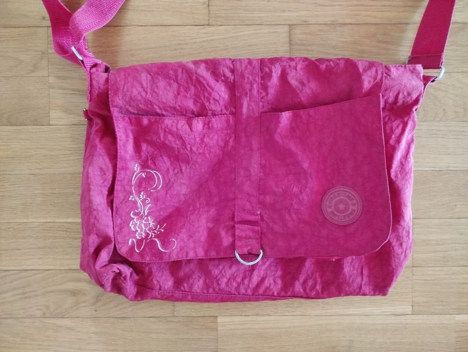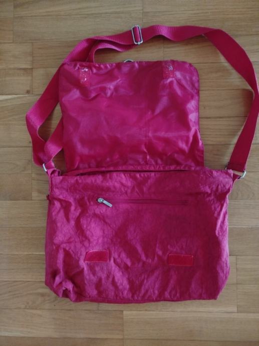 Torba za nošenje preko tijela ili preko ramena. Stanu u nju patike ili bilježnice A4 formata. Boja crvena.