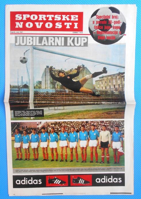 Specijalno, ultra veliko izdanje Sportskih Novosti iz davne 1967. godine posvećeno 20-toj godišnjici Jugoslavenskog nogometnog kupa.
