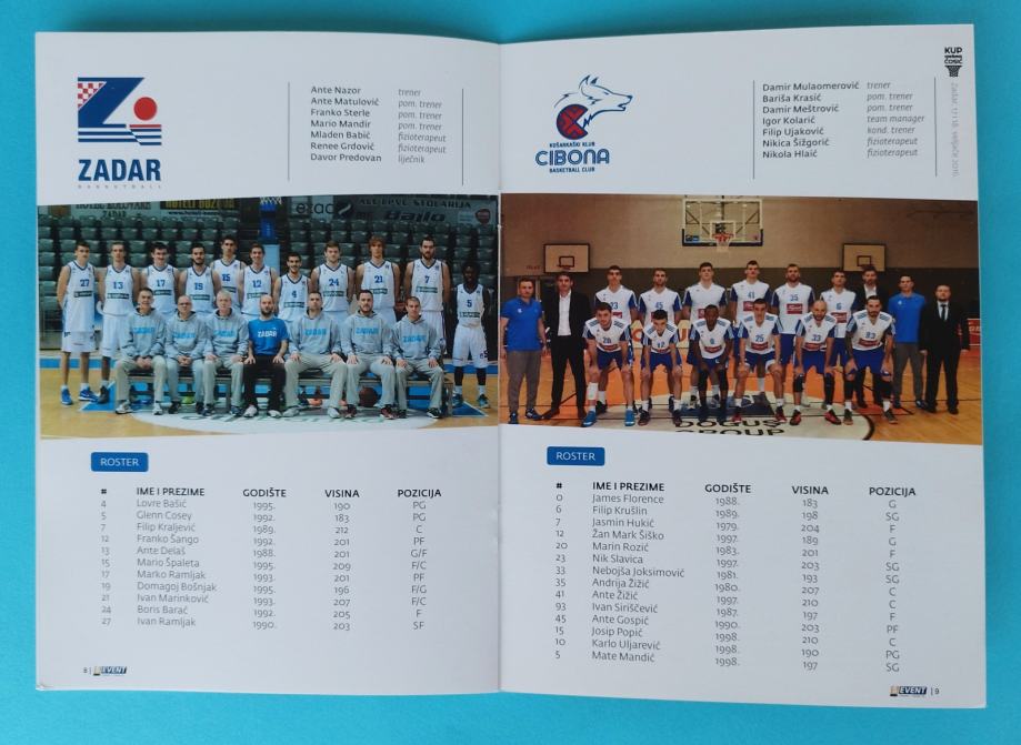 Službeni program završnice Kupa Krešimira Ćosića 2016. godine u Zadru.
