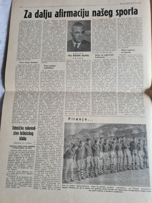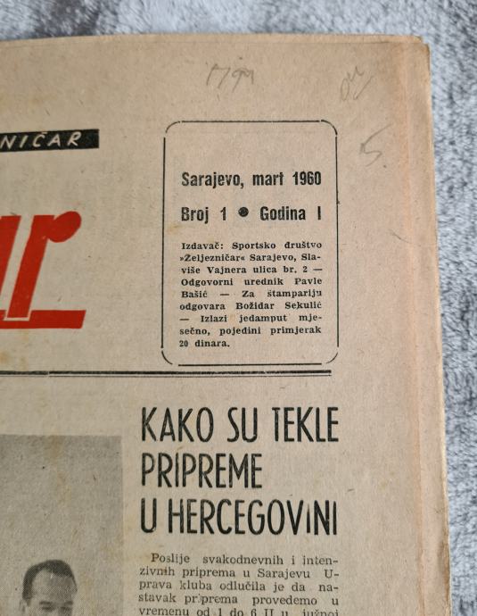 POVIJESNI Br 1. List SD ŽELJEZNIČAR Sarajevo mart 1960.