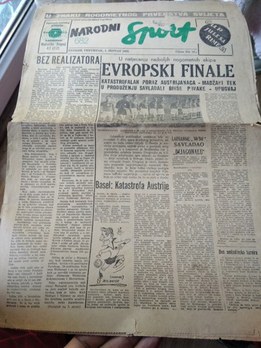Zagrebački *narodni Sport* iz srpnja 1954. godine