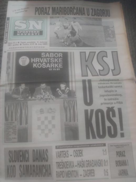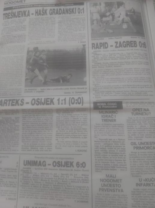 SPORTSKE NOVOSTI 1991 GODINA VARTEKS-OSIJEK TREŠNJEVKA-HAŠK GRAĐANSKI RIJETKO