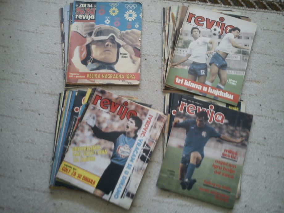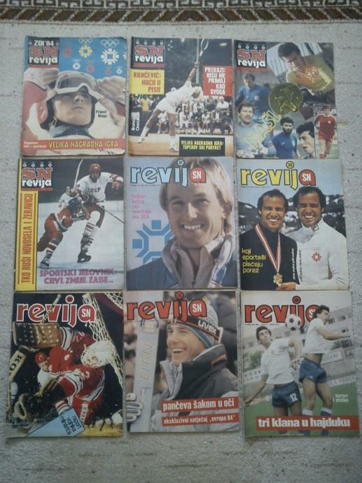 SN Revija godište 1984., 49 komada, od broja 378 do broja 429, nedostaju brojevi 401, 402 i 428. Odlično očuvano ( osim 2 ili 3 broja koji su malo ofucani, naslovnica ili zadnja stranica, u par brojeva izrezani kuponi ), sve kompletno, bez ikakvog šaranja