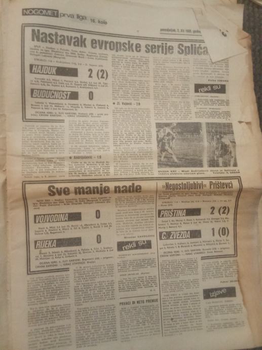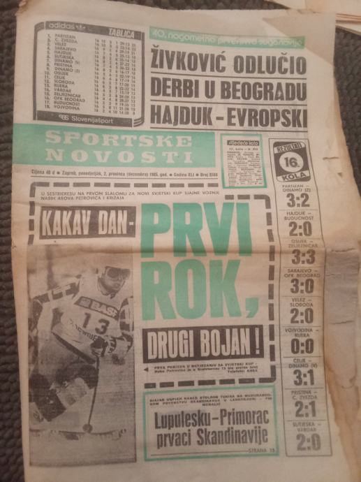 SPORTSKE NOVOSTI 1985 GODINA HAJDUK-BUDUĆNOST PARTIZAN-DINAMO RIJETKO