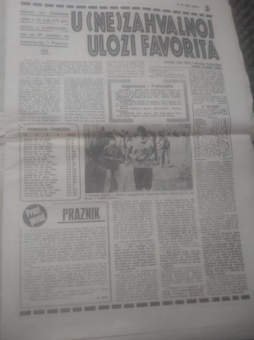 SPORTSKE NOVOSTI 1988 JUGOSLAVIJA-FRANCUSKA RIJETKO