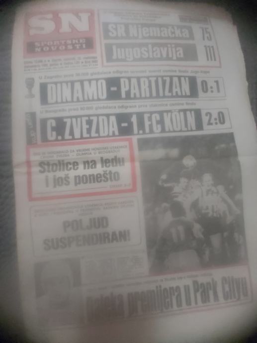 SPORTSKE NOVOSTI 1989 GODINA DINAMO-PARTIZAN C ZVEZDA -1.FC KÖLN RIJETKO