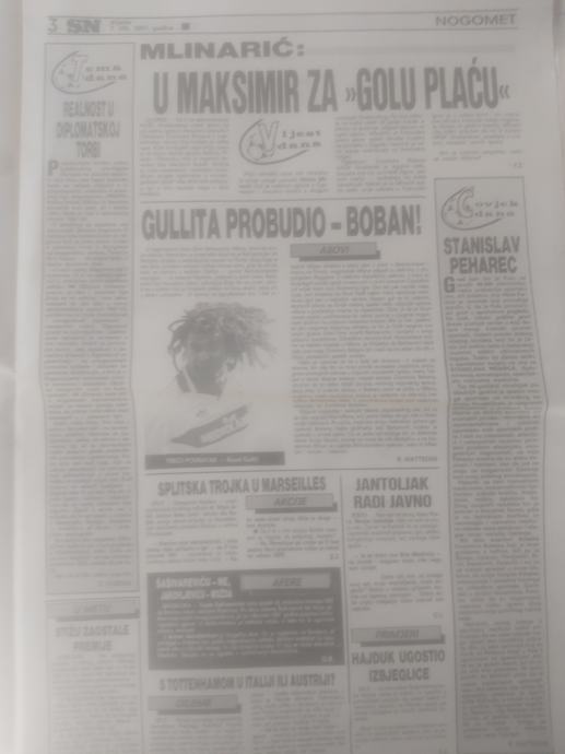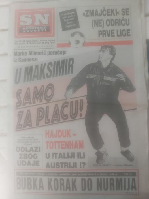 SPORTSKE NOVOSTI 1991 GODINA MARKO MLINARIĆ RIJETKO