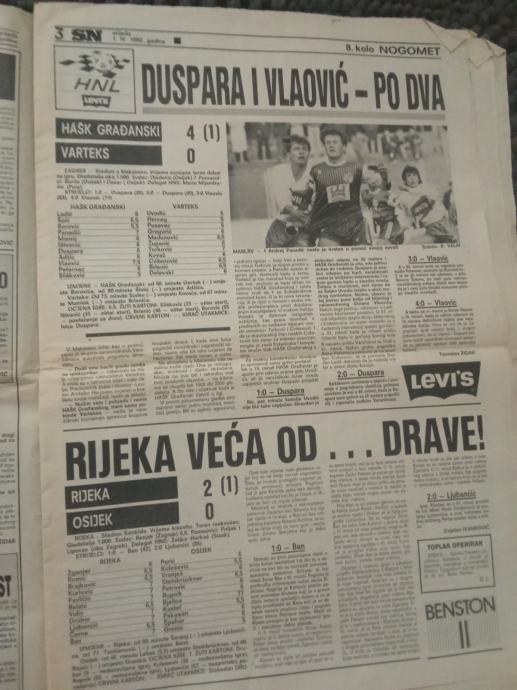 SPORTSKE NOVOSTI 1992 HAŠK GRAĐANSKI -VARTEKS RIJEKA-OSIJEK DUBROVNIK