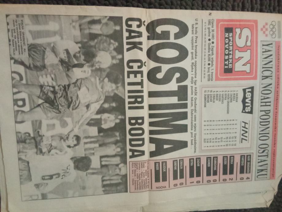 SPORTSKE NOVOSTI 1992 HAŠK GRAĐANSKI -VARTEKS RIJEKA-OSIJEK DUBROVNIK-ZAGREB RIJETKO