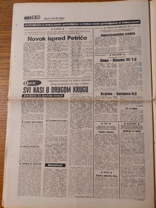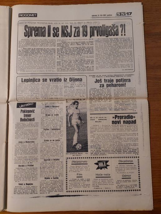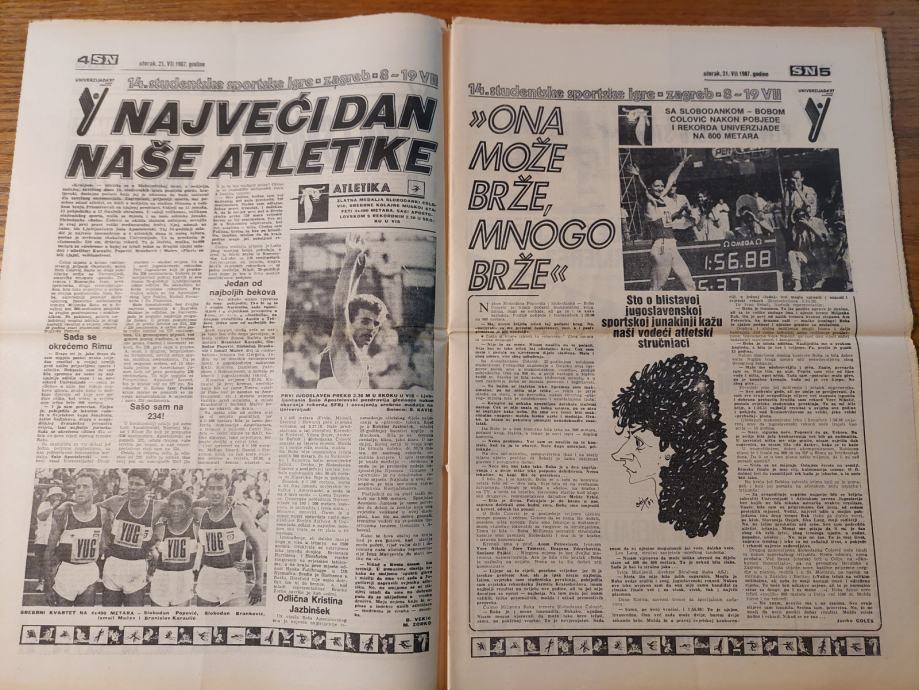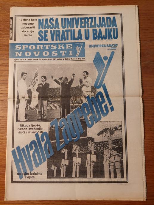Sportske novosti - 21. srpnja 1987. / Hvala Zagrebe - UNIVERZIJADA '87