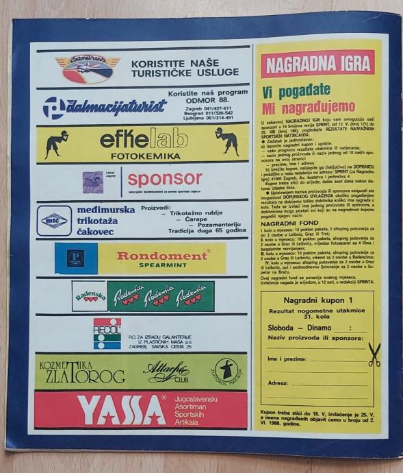 Sprint magazin sportskih novosti 171, 1988 godina KK Jugoplastika post