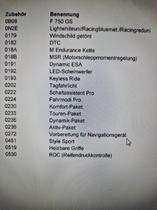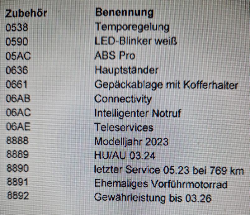 LED svjetla, LED bijeli pokazivači, DTC, M Endurance lanac, MSR, Dynamic ESA, Keyless, Pro Shift mjenjač, Dnevna automatska svjetla, Pro modeli vožnje za odabir, Komfort paket, Dynamik paket, Aktiv paket, priprema za navigaciju, Sport Style, grijanje ručki, RDC kontrola tlaka u gumama, tempomat, ABS Pro, Teleservis SOS poziv pri nezgodi, centralna nogara, nosač kufera i priprema za bočne kufere, inteligentno povezivanje...