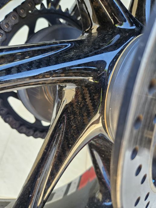Motor na sebi ima dosta carbona: prednji blatobran, zadnji blatobran sa zaštitom lanca, carbon dijelovi oko i ispod tanka, carbonski prednji usis(ide uz motor i original), mali carbonski vizir poviše celera, karbonske zaštite rame, carbon krila, carbon felge...