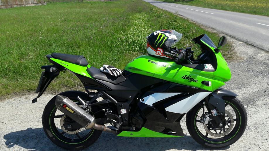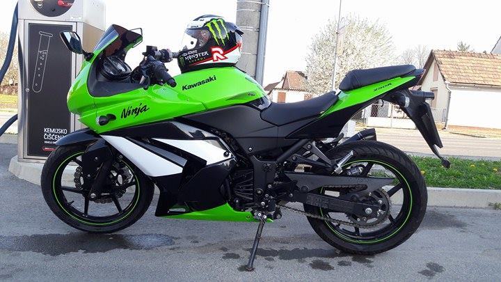 Motor je u dobrom stanju ocuvan,nove pakne,nova prednja guma,novo ulje i filter,registriran godinu dana, na njemu je akrapovic original za ninju 250 placen 2700 kn stavljen je i crni vizir. (Uz motor dajem i original vizir i auspuh)