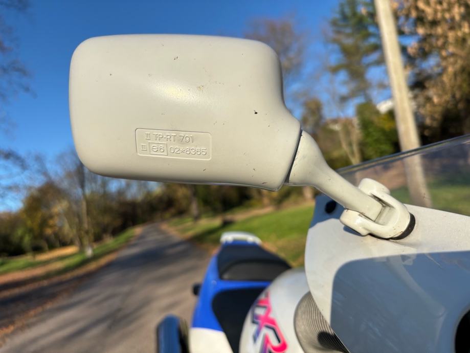I čovjek je u 90-tim htio imati dva mala trokutića na masci motora u boji slova na rezervoaru. Onda je skinuo naljepnice i polakirao te male trokute ( nije to trebao nikako napraviti ali šta ja tu mogu). Vjv u 90-tim nije bas bilo samoljepljivih naljepnica Itd. Ja sam kupio original obe naljepnice ali sam siguran da nebi 100% pokrile. Ostavio sam ih i prilažem ih uz motor.