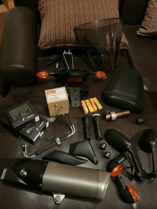 suvozačevo sjedalo, žmigavci, relej žmigavaca, nosač tablice, ručke,utezi volana, retrovizori, prozirni vizir...sve u odličnom stanju.