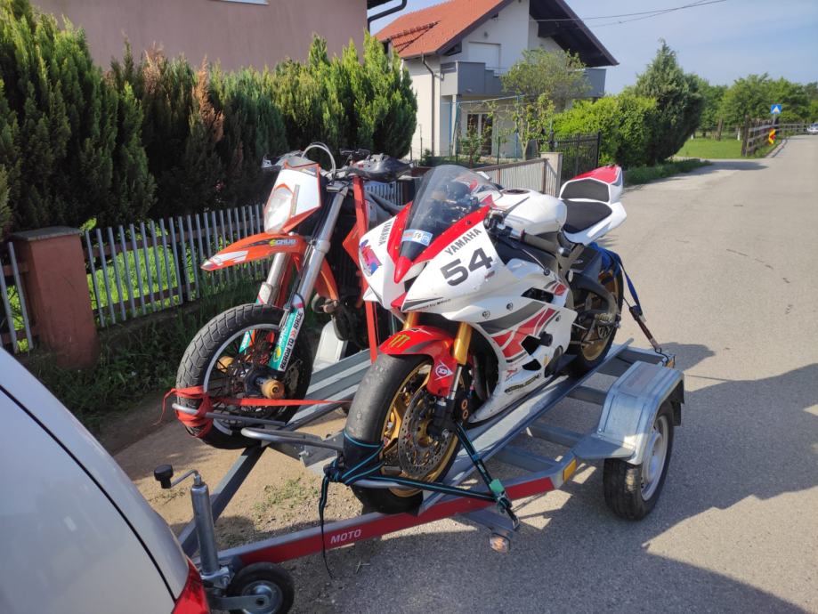 Uz motor ide i prikolica(750kg sa ceradom) registrirana,stara godinu dana-stanu dva motora :)