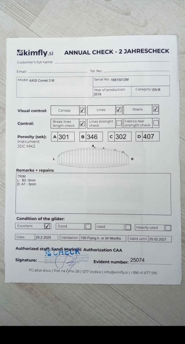 Prodajem krilo Axis Comet 3, veličina M (80-105)kg, visoki B. Krilo je u izvrsnom stanju, ima 50h i novi check do 2027. Krilo nema nikakvih zakrpa ni nedostataka..naprotiv krilo je top. Prodajem ga samo zato jer imam prevelike pauze a ono zahtjeva aktivno letenje.Cijena nije fixna