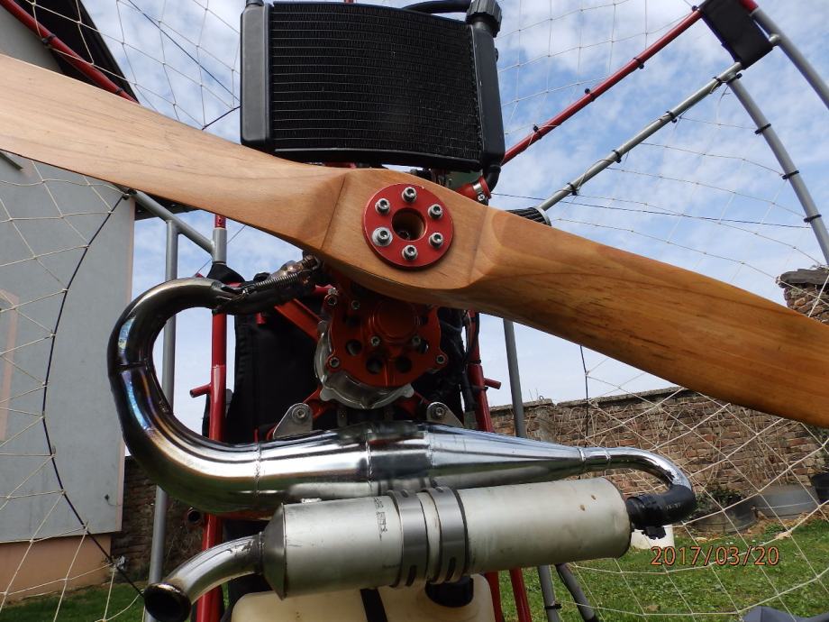 18 ks, 55 kila potiska, vodeno hlađenje, dva okvira (trodjelni i laminatni) elisa 125 cm, tach metar (broj okretaja i sati rada), generalno uređen i spreman za sezonu, novo sjedalo L veličine.